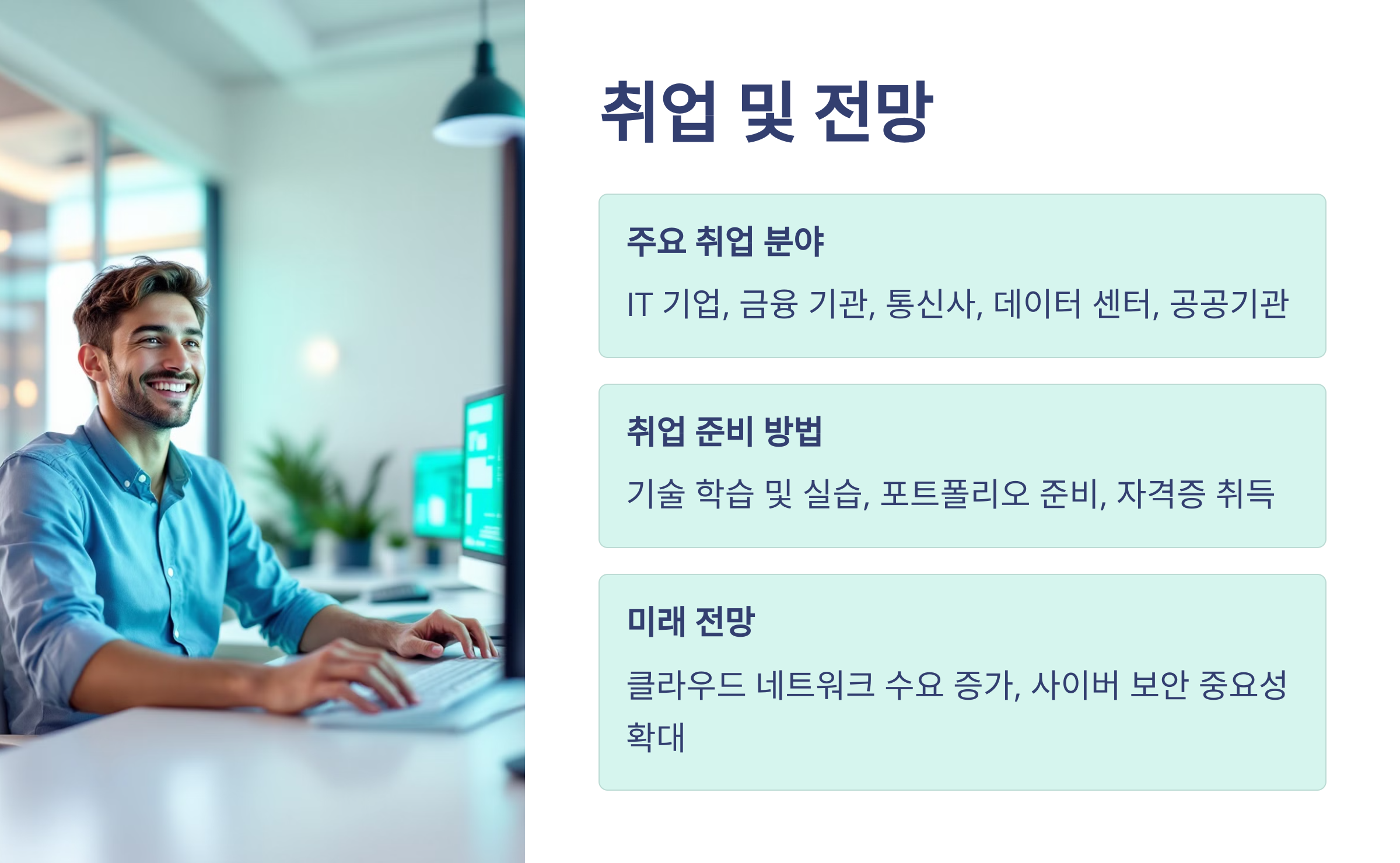 - 클라우드 네트워크 수요 증가: AWS, Azure, Google Cloud 등 클라우드 기반의 네트워크 기술을 요구하는 기업이 많아지고 있습니다.