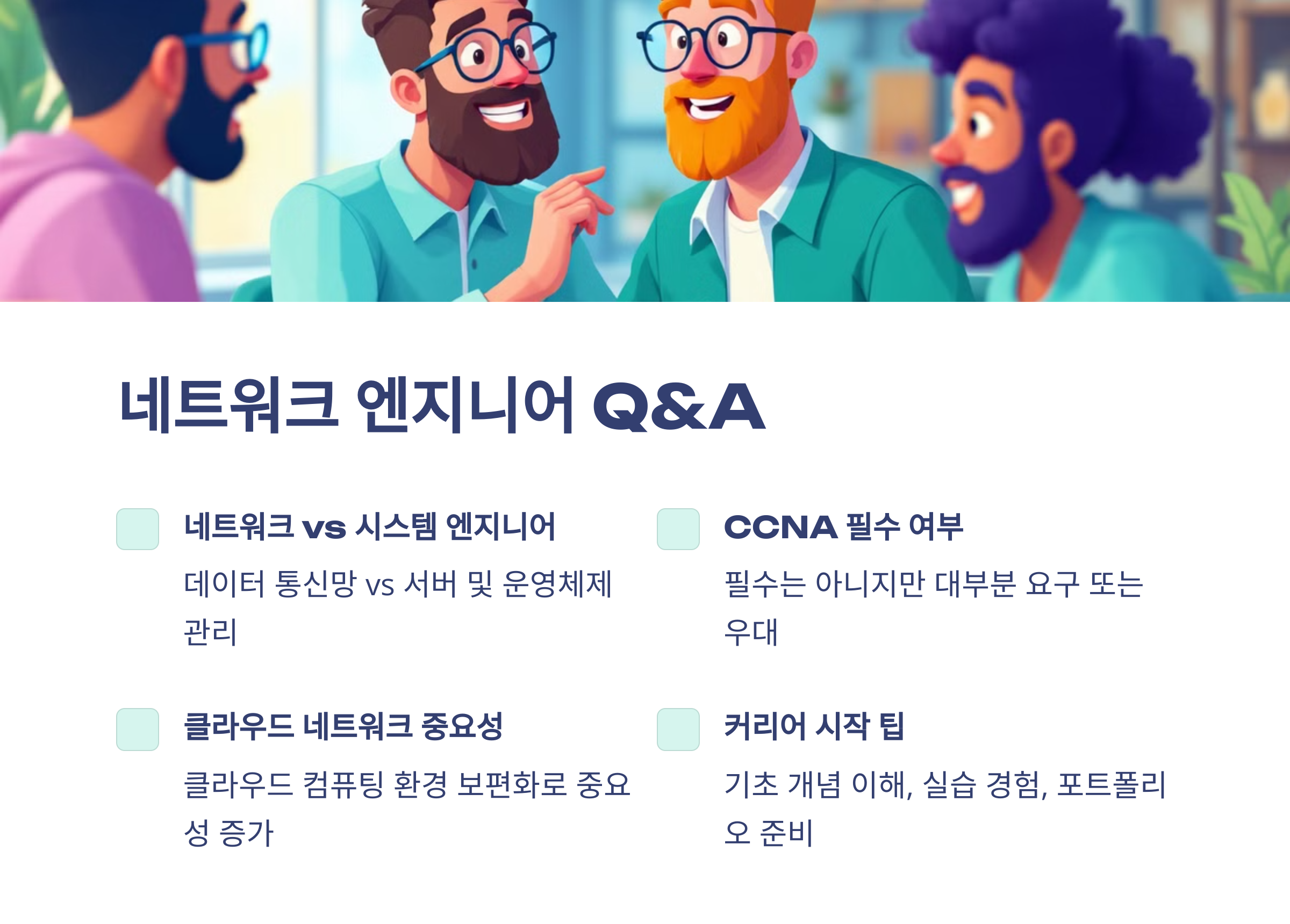 A5. 기초 네트워크 개념을 철저히 이해하고, 실습 경험을 통해 문제 해결 능력을 키우는 것이 중요합니다. 자격증과 프로젝트 경험을 포트폴리오에 포함하세요.