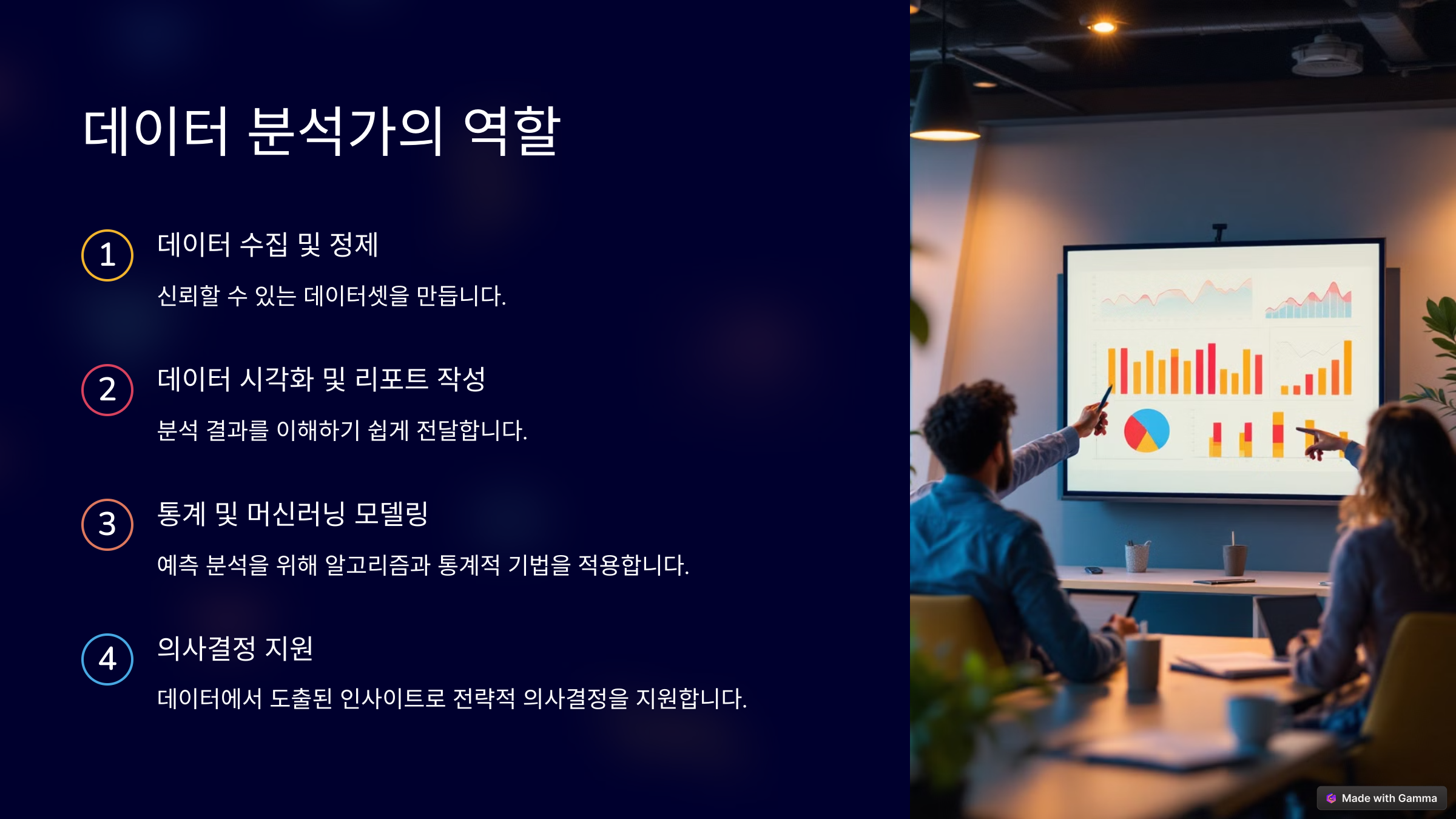 - 데이터 과학자: 머신러닝 및 예측 모델링을 통해 더 깊은 분석을 수행하며, 통찰력 있는 결과를 도출합니다.