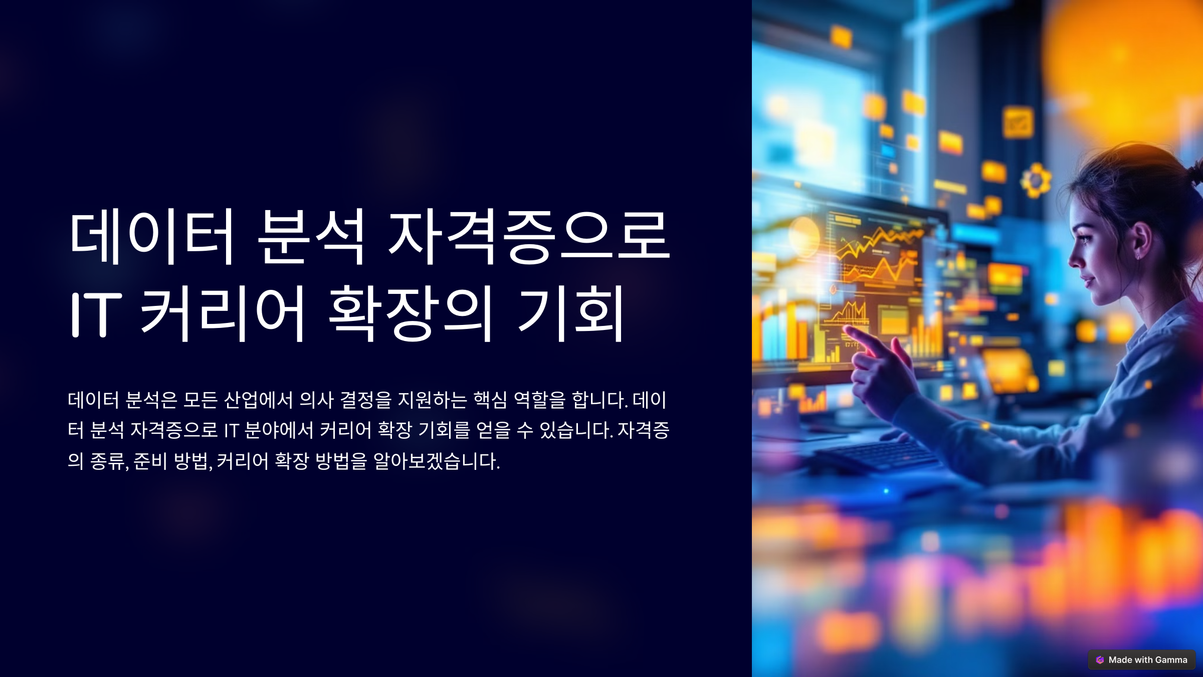 데이터 분석은 앞으로도 수요가 늘어날 전망이 높은 분야입니다. 데이터 분석 자격증으로 여러분의 IT 커리어 확장을 시작해보세요!