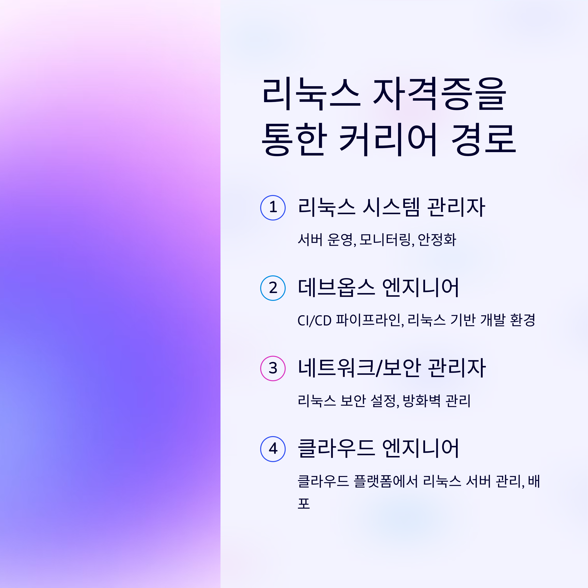 A3. 리눅스 시스템 관리자, DevOps 엔지니어, 네트워크 및 보안 관리자, 클라우드 엔지니어 등 다양한 직무에 지원 가능합니다.