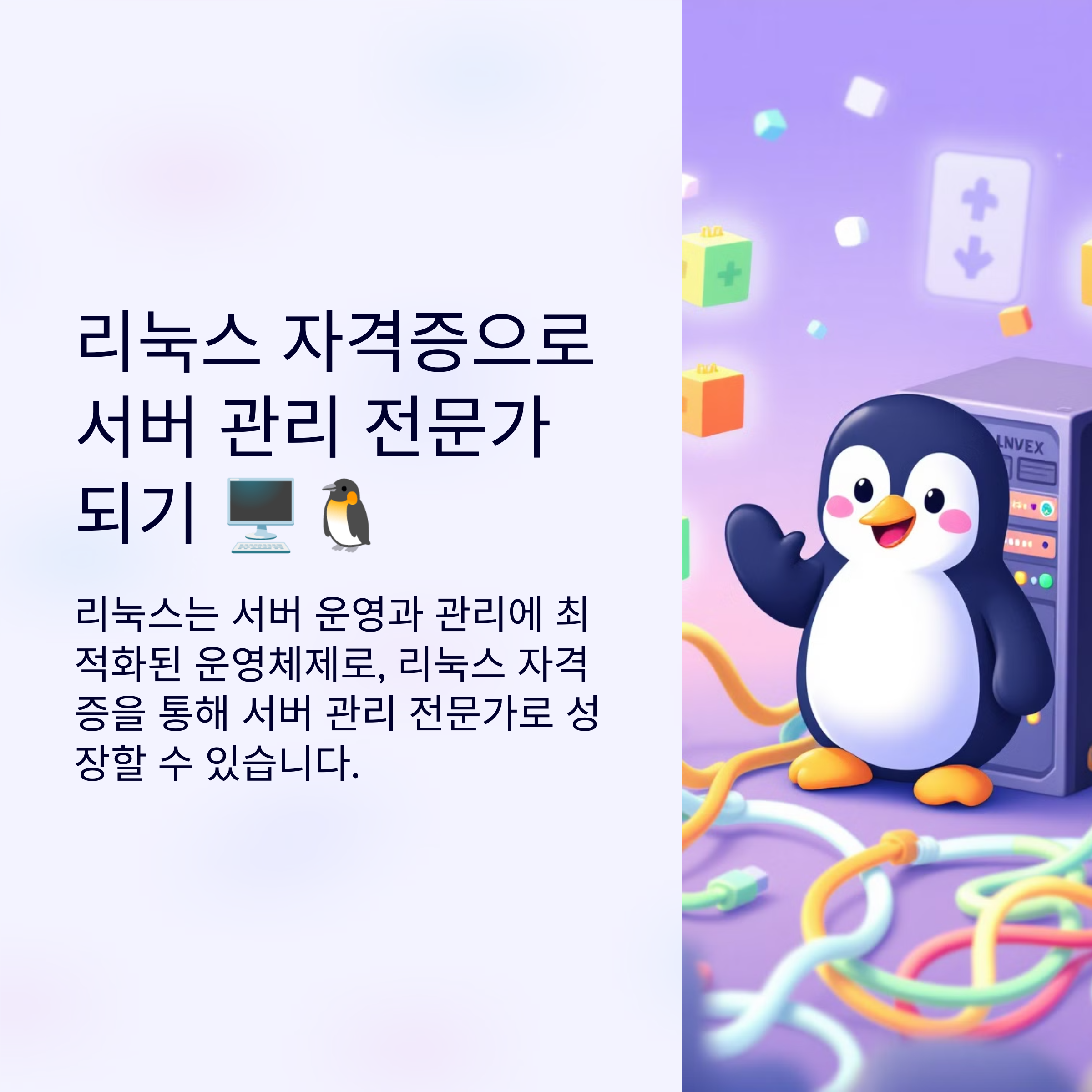 리눅스 자격증은 서버 관리 전문가로서의 첫 걸음을 시작하는 데 매우 유용한 자격증입니다. CompTIA Linux+, LPIC, RHCSA 등 자격증을 통해 리눅스 시스템의 기본과 실무 기술을 배우고, 이를 바탕으로 서버 관리와 네트워크 보안까지 폭넓은 IT 기술을 습득하세요. 자격증과 실무 경험을 통해 커리어를 발전시키고, 서버 관리와 클라우드, DevOps 분야에서 전문가로 성장해 나가세요!
