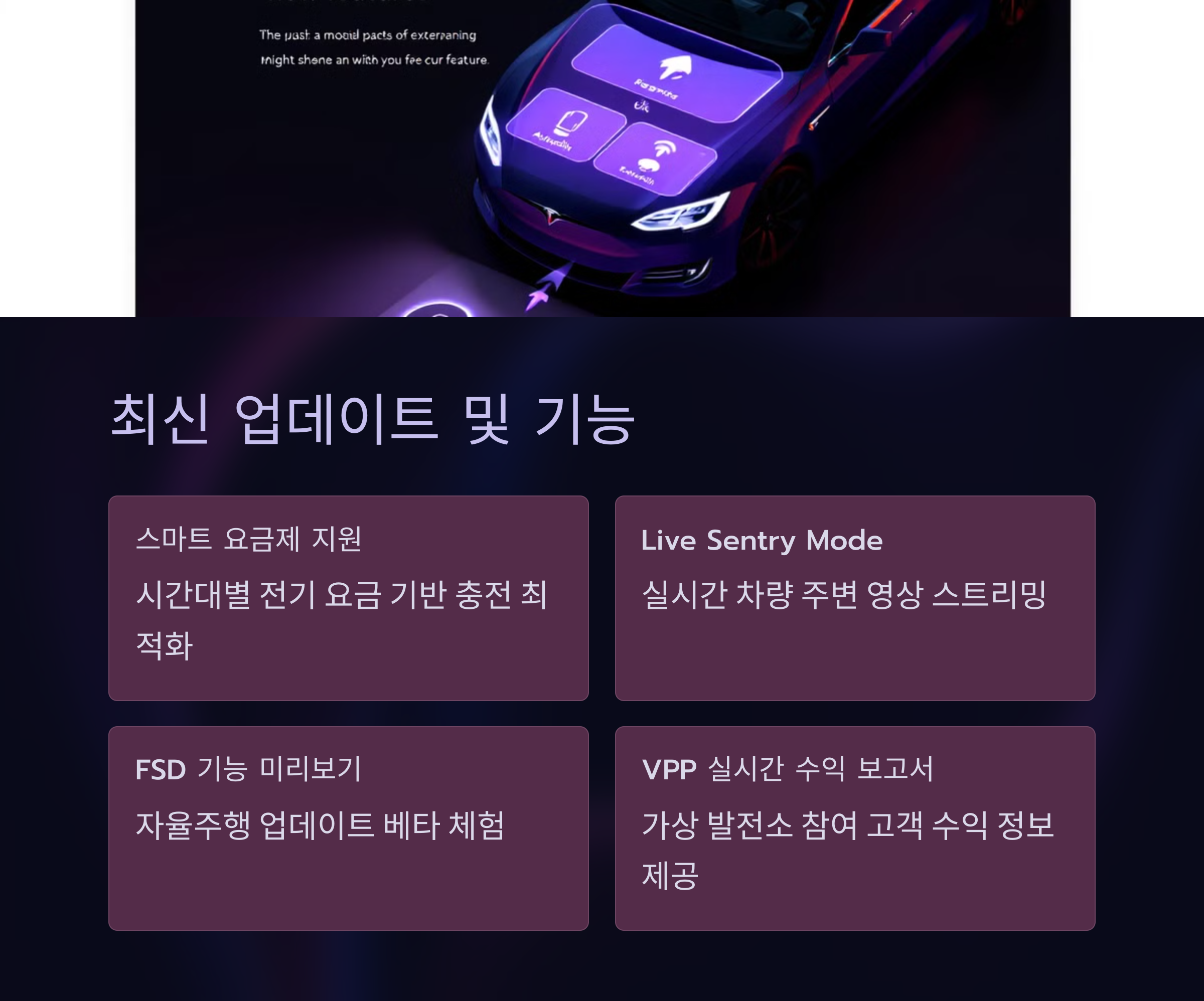 - OTA(Over-the-Air) 소프트웨어 업데이트를 통해 새로운 기능이 정기적으로 추가됨.
