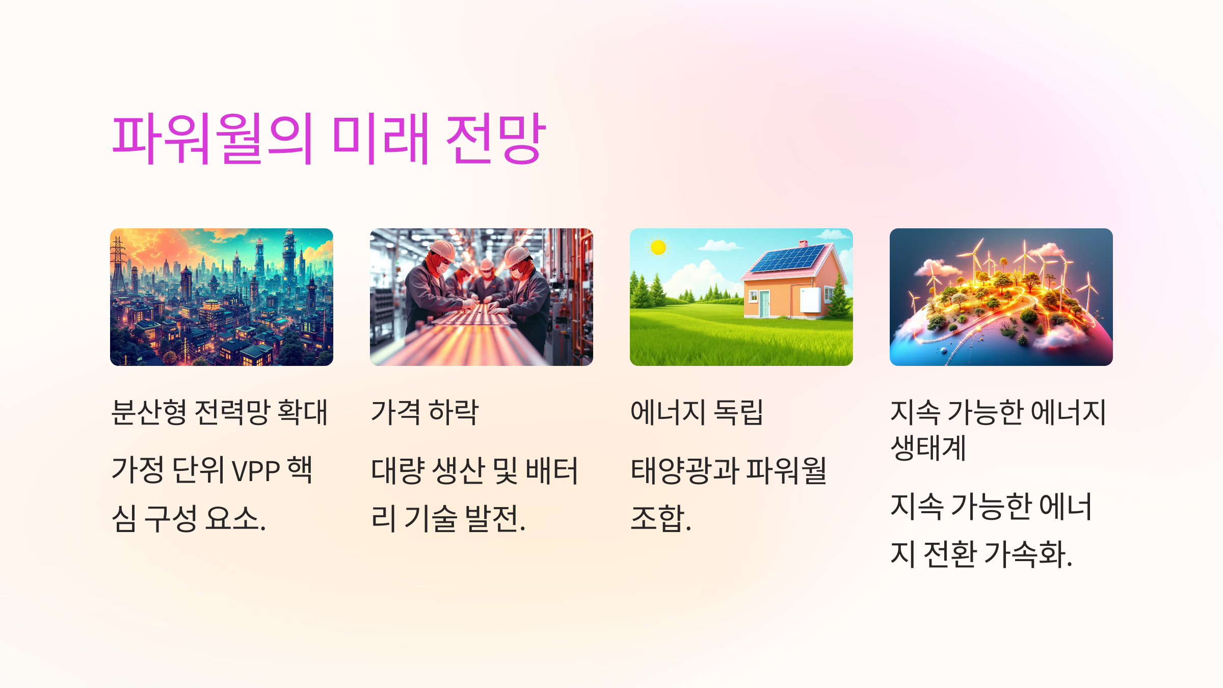 - 파워월은 지속 가능한 에너지로의 전환을 가속화하며, 전 세계적인 에너지 전환에 기여할 전망.