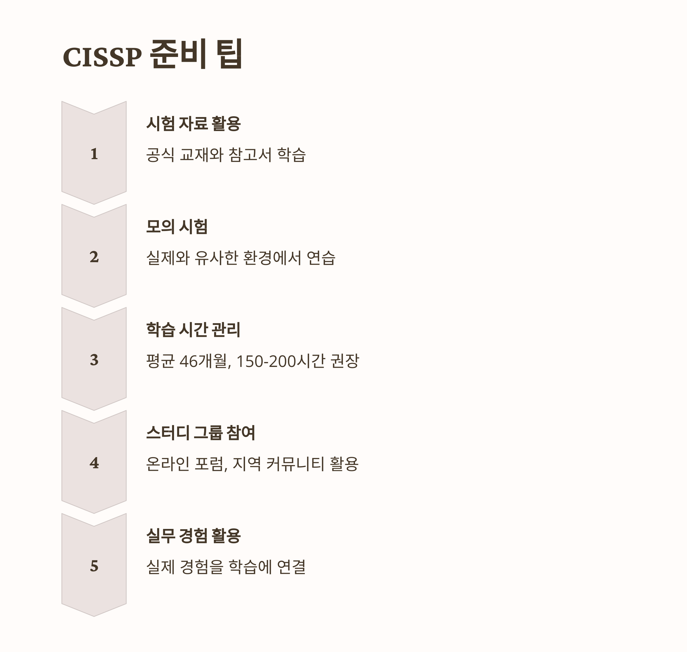 - 참고서: "CISSP All-in-One Exam Guide" 및 "Official ISC² Guide to the CISSP Exam".