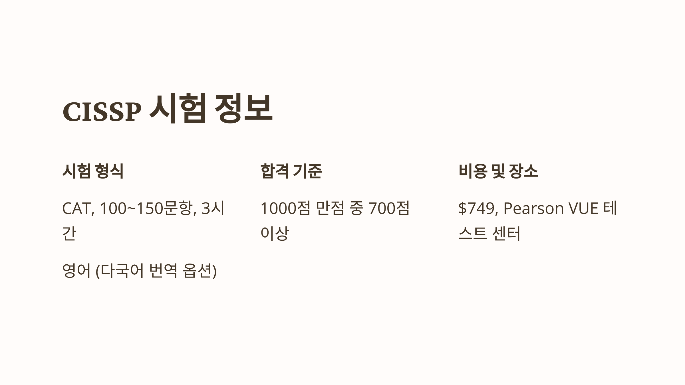 - CISSP는 광범위한 지식과 높은 이해도가 요구되며, 체계적인 준비가 필요한 시험입니다.