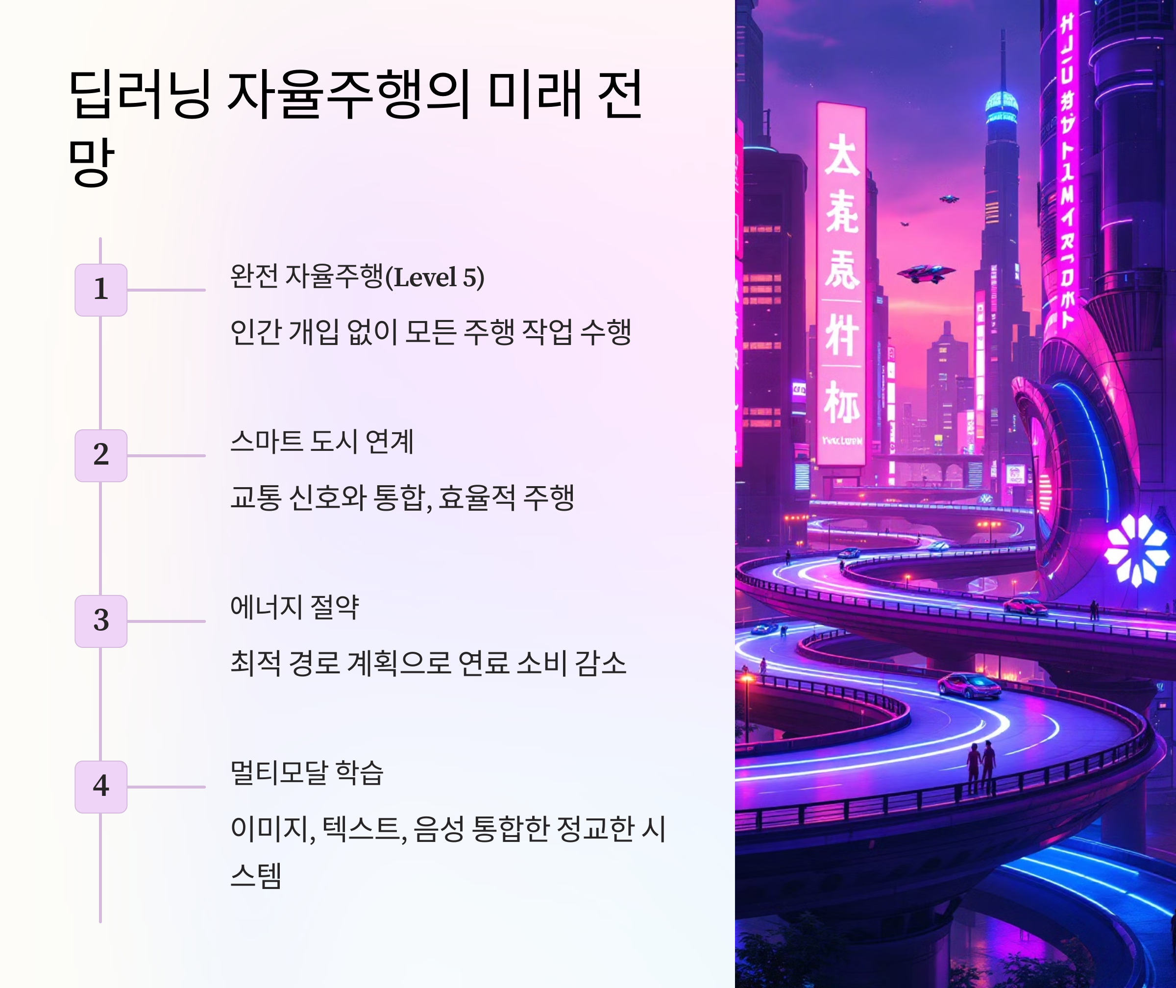 - 스마트 도시와 연계: 교통 신호와의 통합으로 더 효율적인 주행.