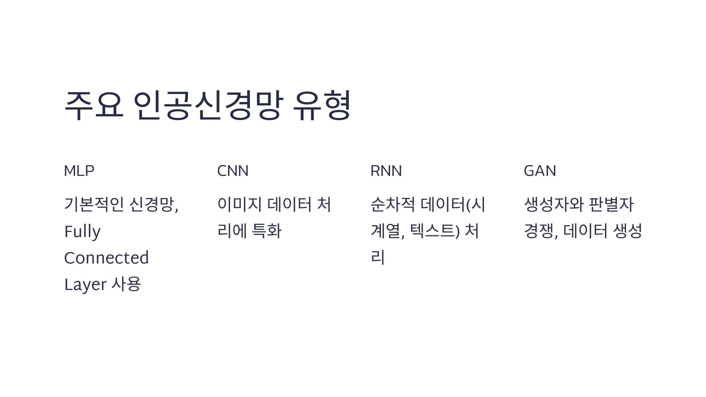 5️⃣ 주요 인공신경망 유형