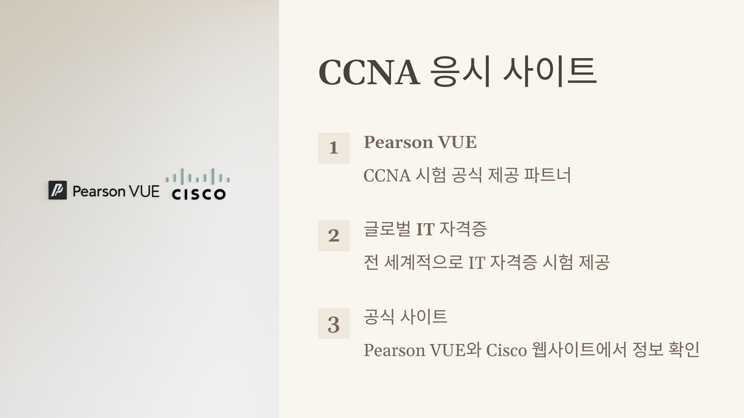 - Pearson VUE CCNA 시험 응시 사이트: https://www.pearsonvue.com/cisco