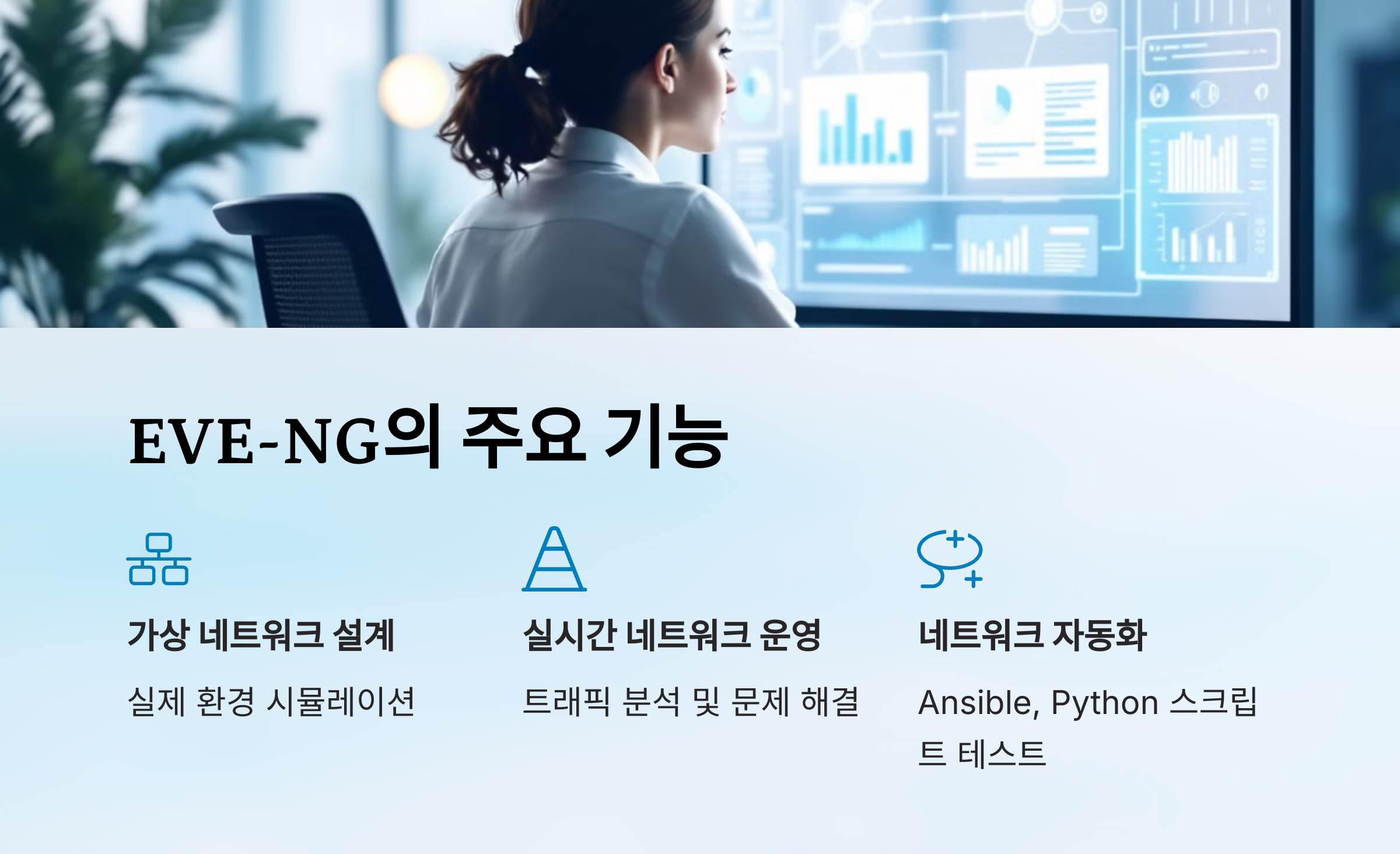 - 대규모 네트워크 토폴로지 설계와 고급 라우팅, 보안 테스트를 지원.