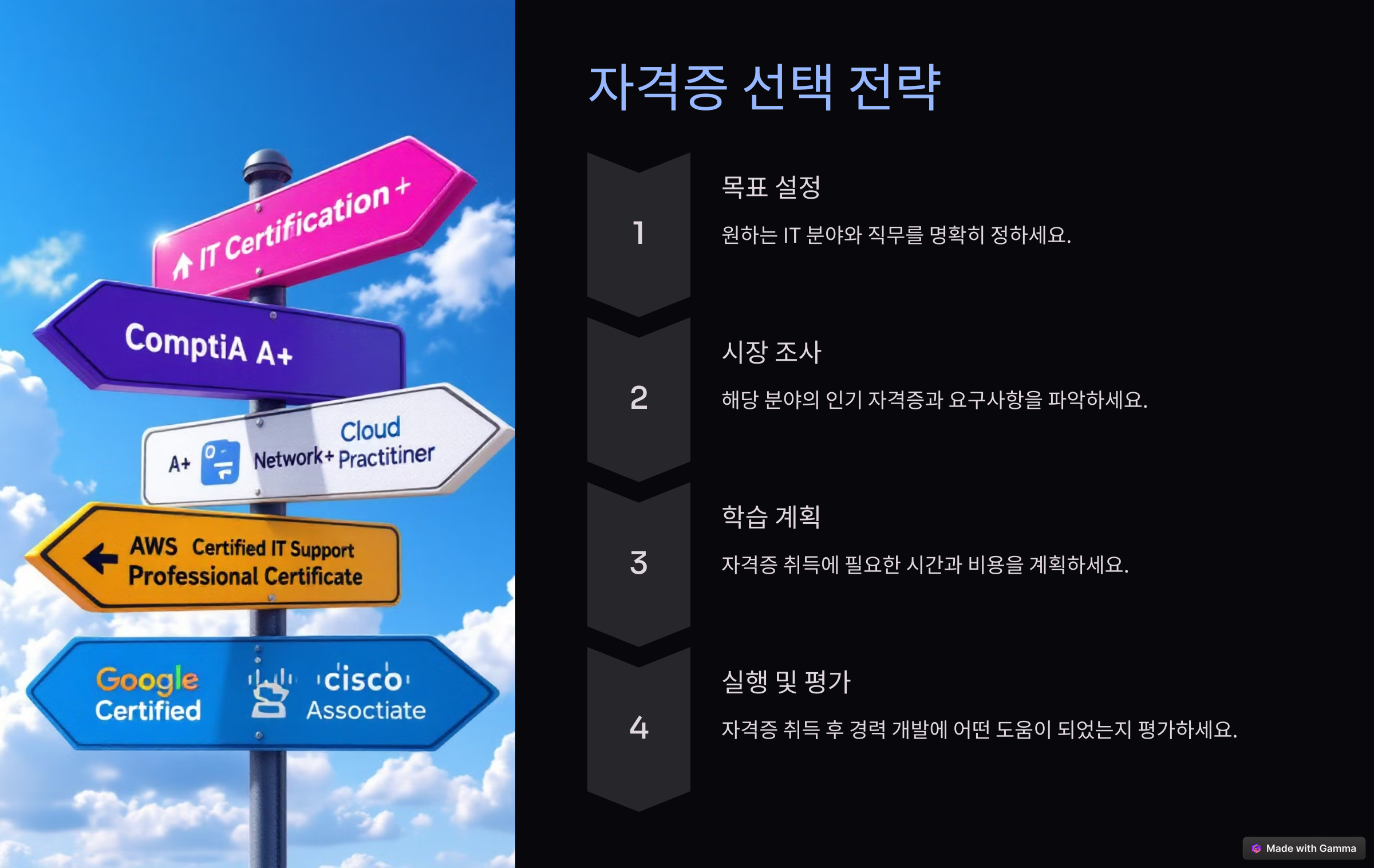 IT 자격증은 취업 시장에서 경쟁력을 높이고 경력 개발에 큰 도움이 됩니다. 하지만 선택에 있어 무작정 취득하는 것이 아니라 자신의 목표, 경험 수준, 비용, 시장 수요 등을 고려하여 전략적으로 접근하는 것이 중요합니다. 여러분의 IT 자격증 취득이 성공적으로 이루어져, 원하는 목표에 도달할 수 있기를 응원합니다!