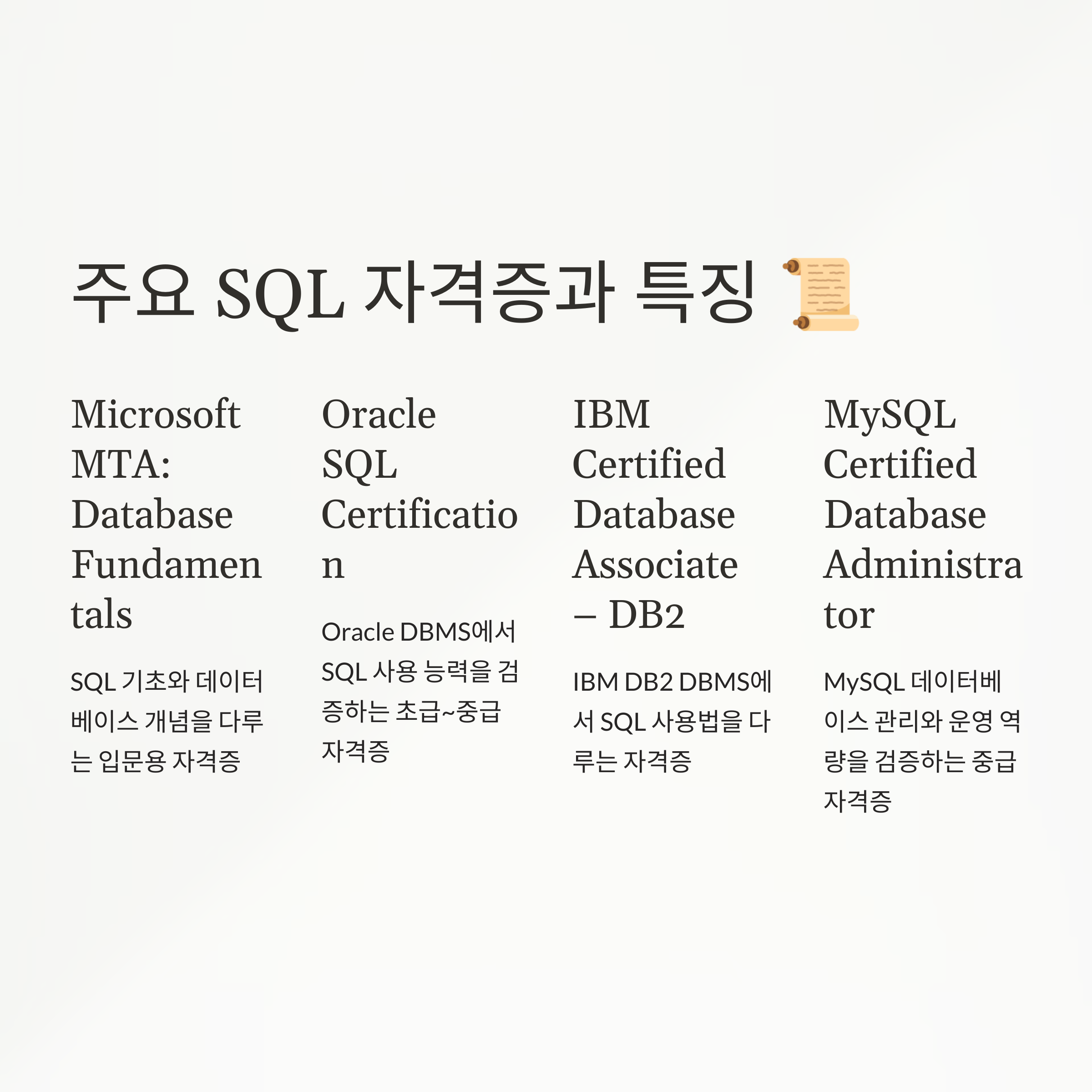 주요 SQL 자격증과 특징 📜
