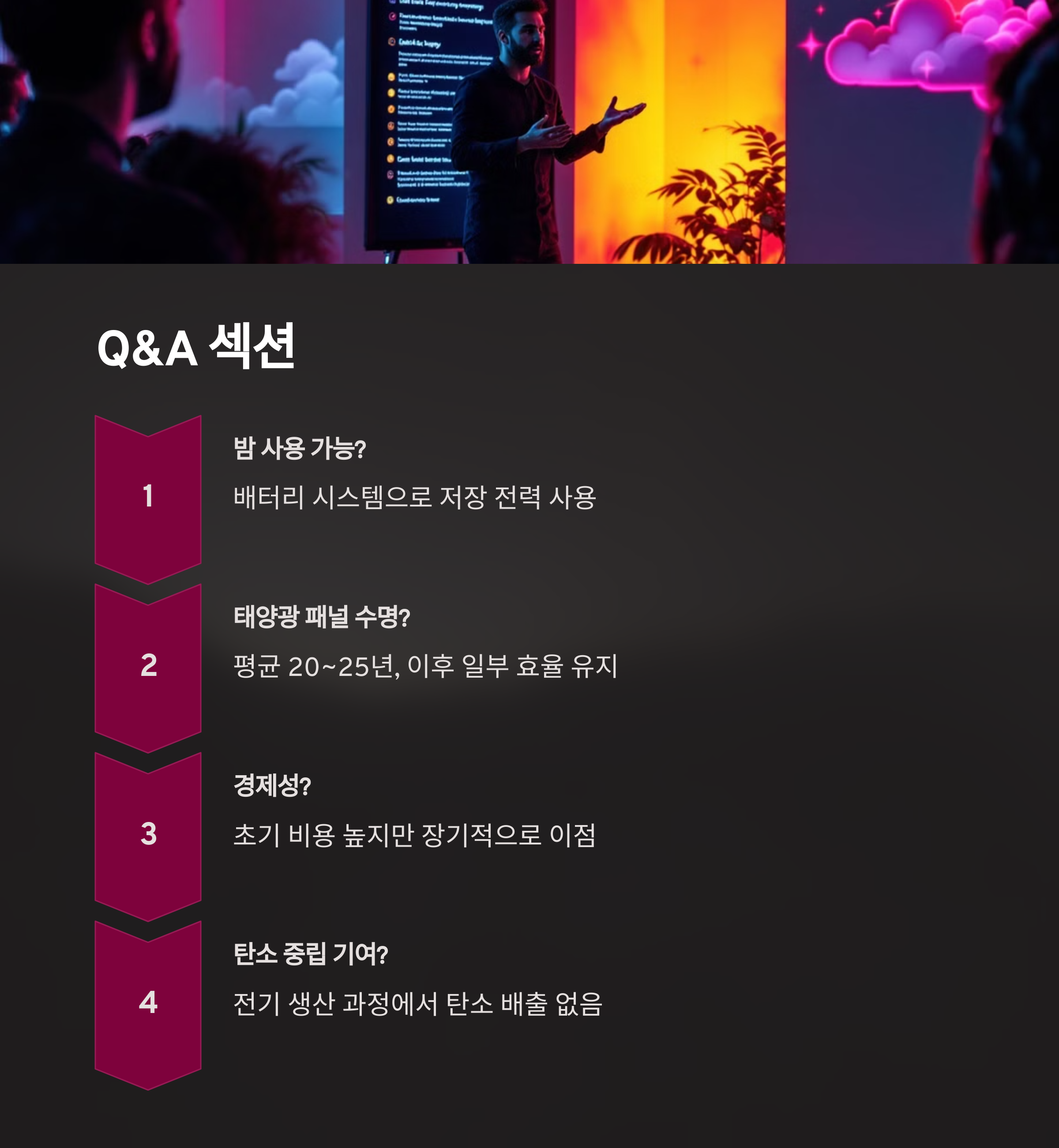 Q1. 태양광 에너지는 밤에 사용할 수 있나요?