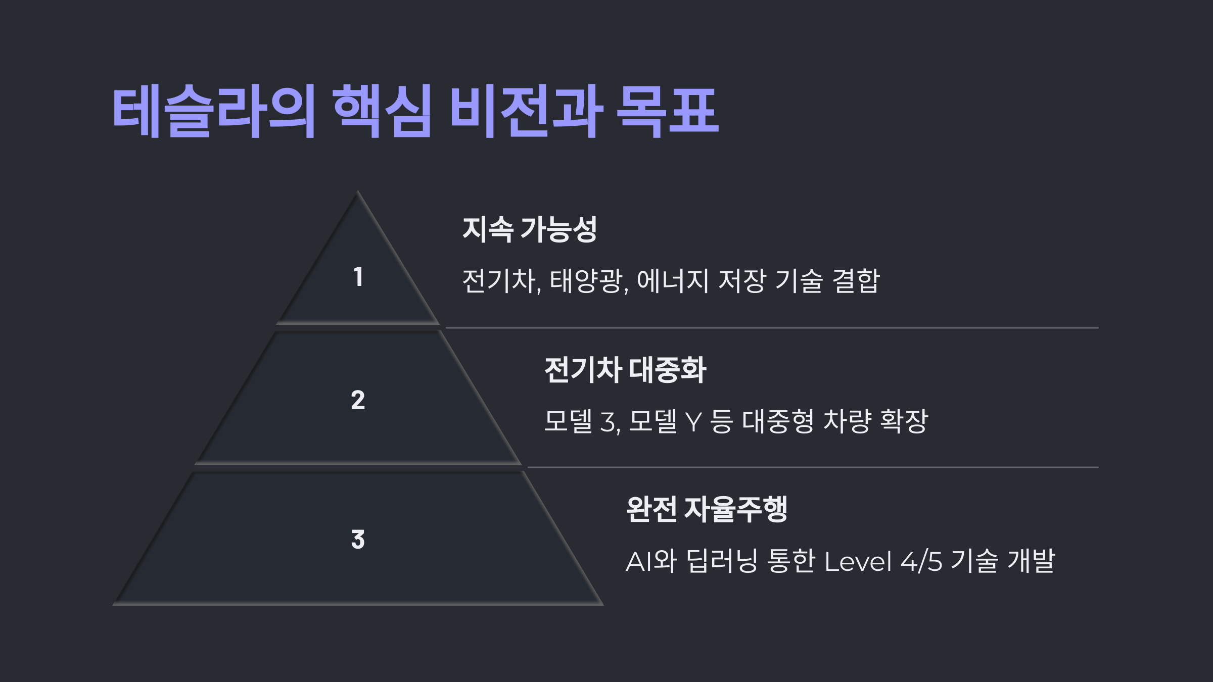 테슬라는 전기차와 자율주행, 에너지 솔루션의 선두주자로, 지속 가능한 에너지와 기술 혁신이라는 비전을 실현하고 있습니다.