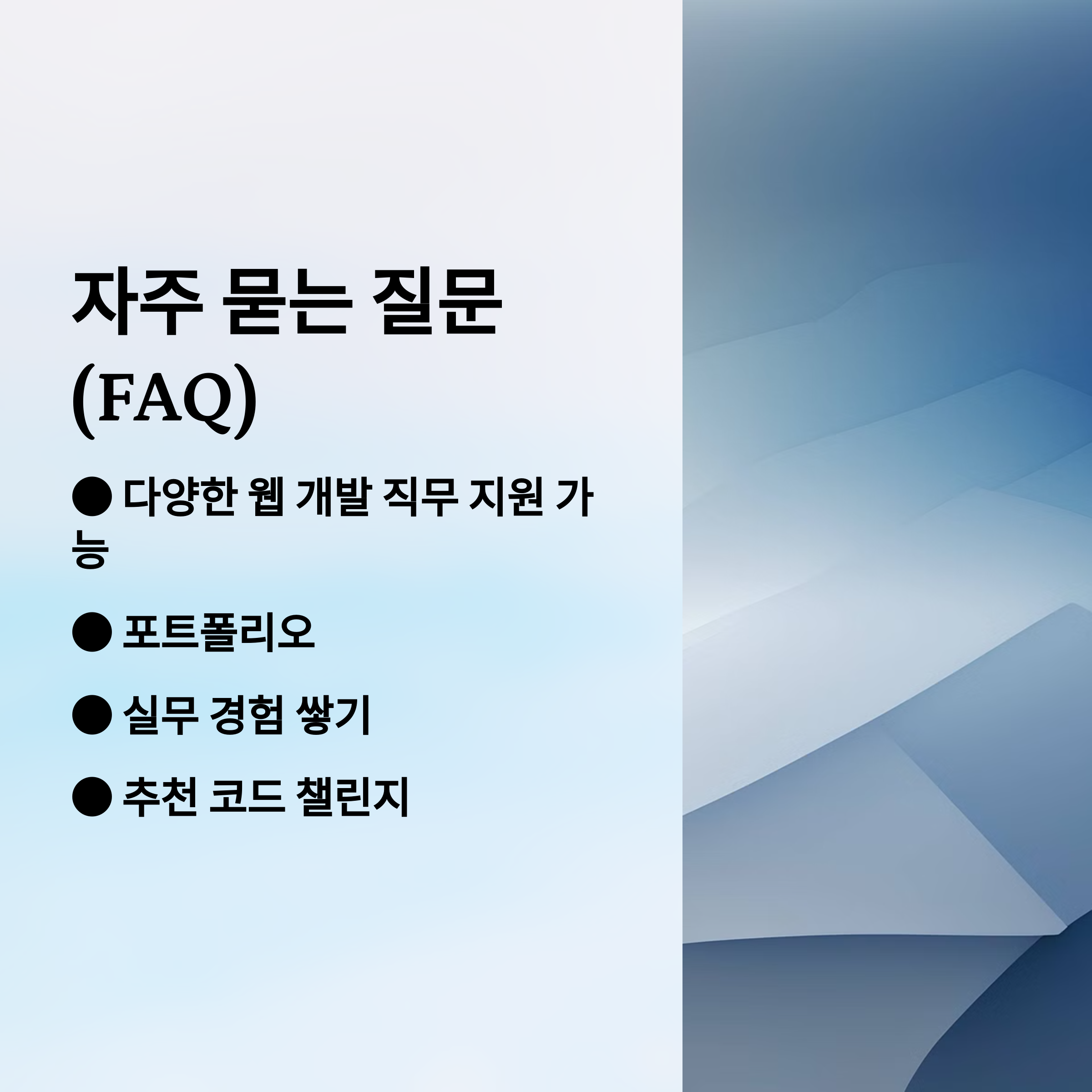 - 신뢰할 수 있는 역량 증명: HTML, CSS, JavaScript 등 웹 개발 필수 스킬을 학습했다는 점을 객관적으로 증명