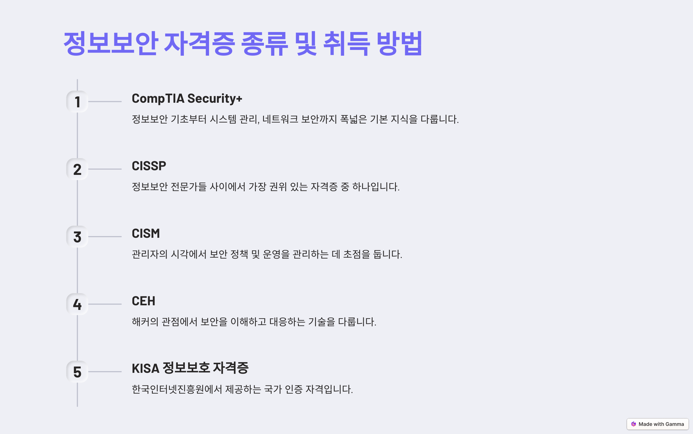 이와 같은 정보보안 전문가로 성장하기 위해 필요한 자격증과 준비 방법을 단계적으로 살펴보겠습니다.