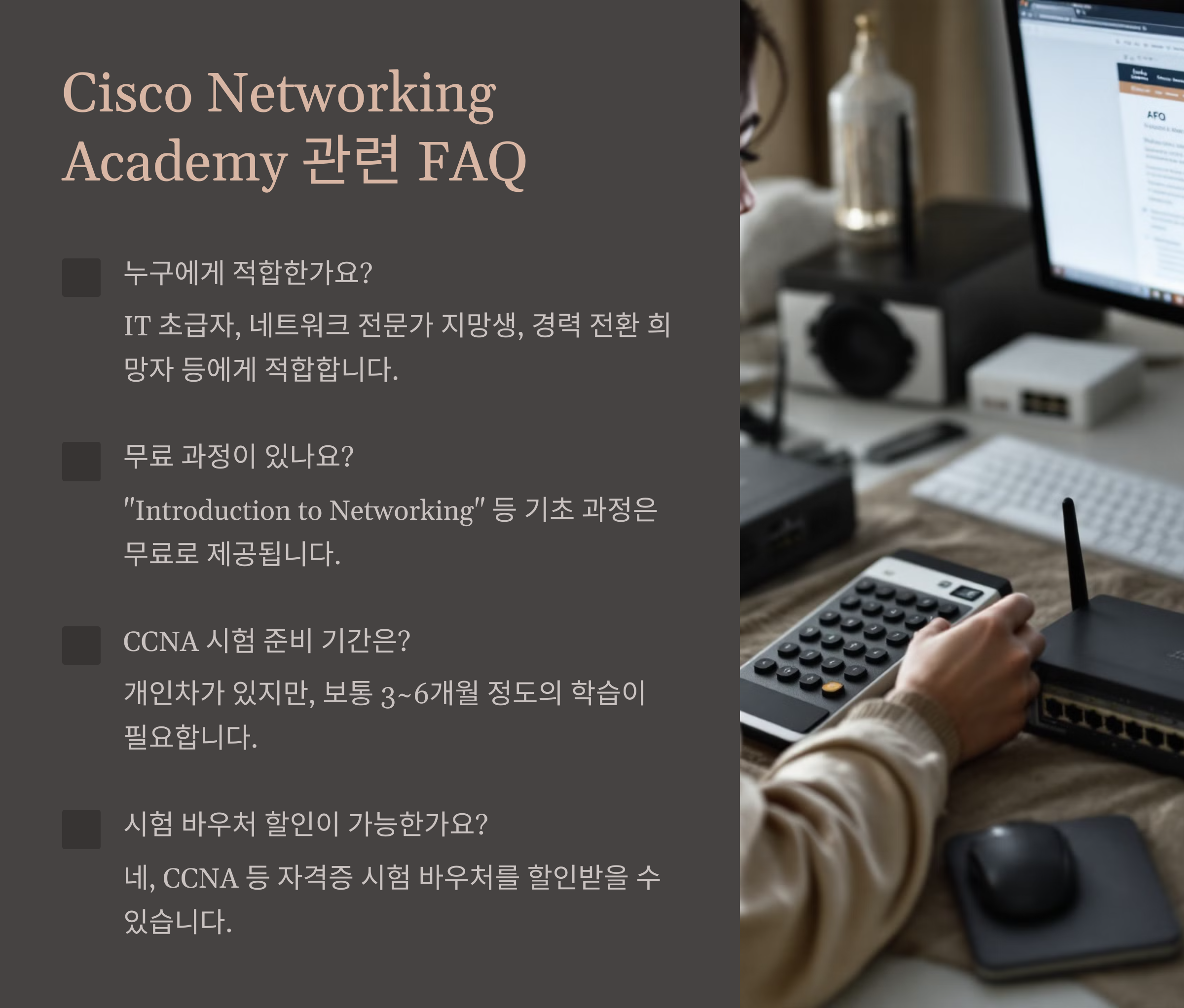 Q4. Cisco Networking Academy를 통해 시험 바우처를 할인받을 수 있나요?