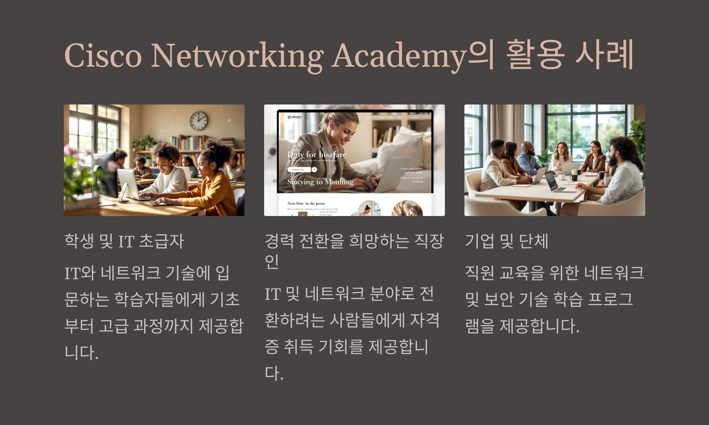 - Cisco의 학습 프로그램을 통해 실무 능력 강화